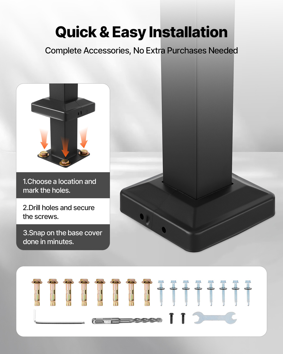 Complete Accessories: This exterior step handrail comes with a complete set of installation hardware, ensuring a secure and stable installation. The comprehensive hardware set facilitates a smooth and efficient setup