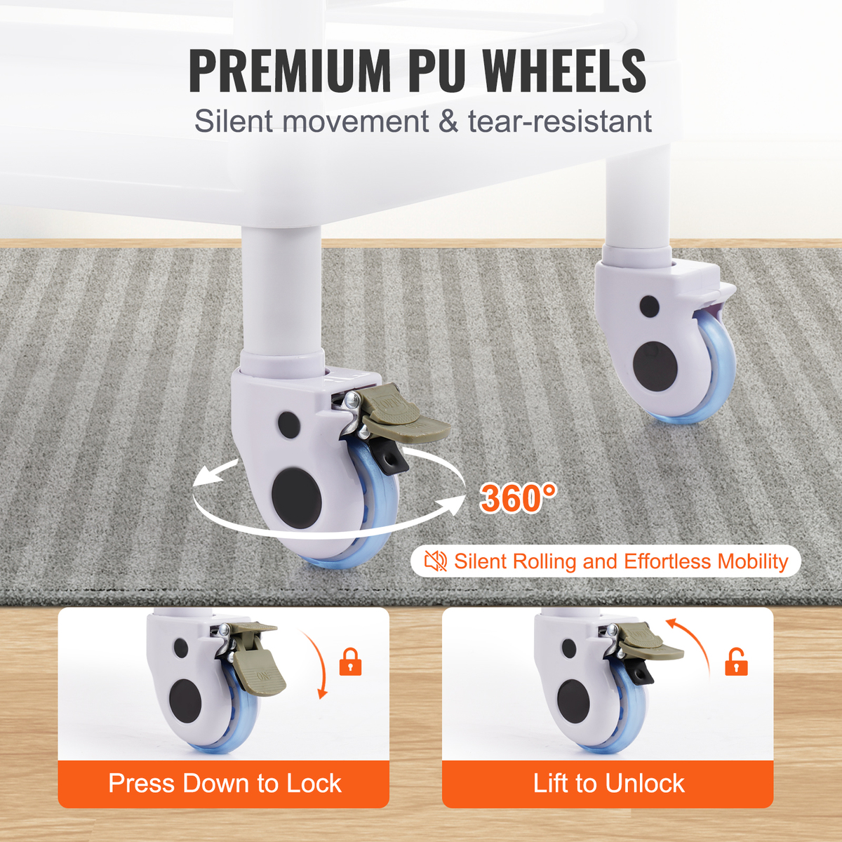 Durable Material: Excellent impact and chemical corrosion resistance ensure the medical cart remains like new for long periods, reducing maintenance costs. Made from high-density ABS material and reinforced with internal steel plates, VEVOR's cart withstands wear and impact in daily use, ensuring long-term reliability.