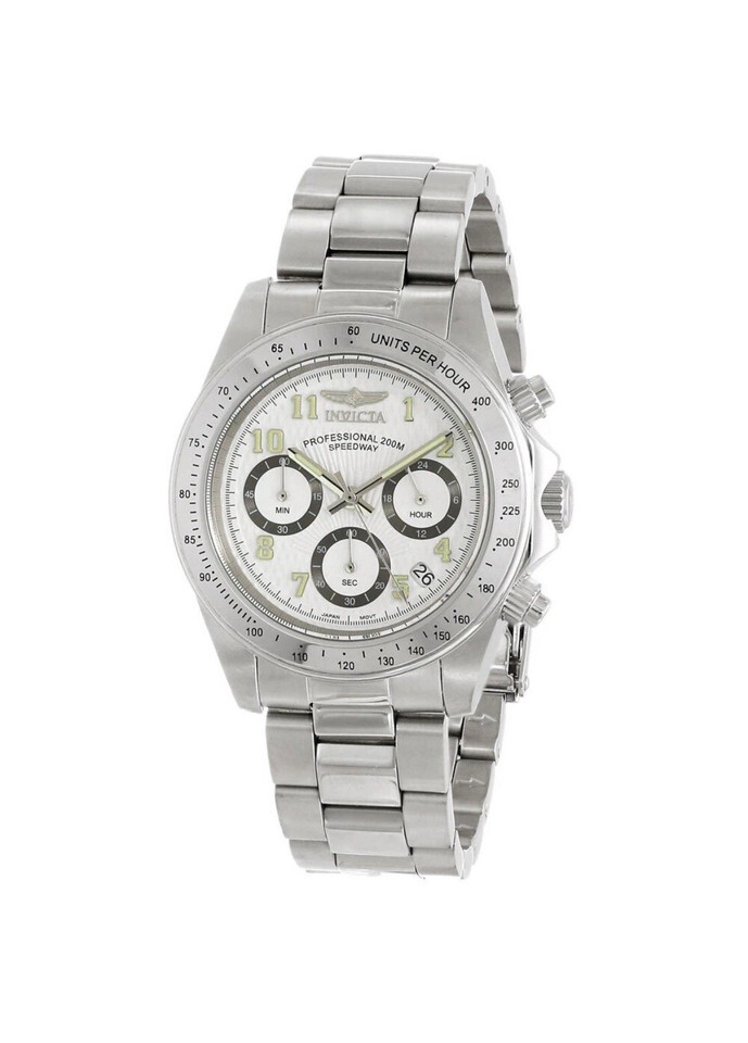This Invicta watch from the Speedway collection with Swiss Chronograph movements, 200 meter water resistance, screw-down case backs, Tritnite luminous hands.