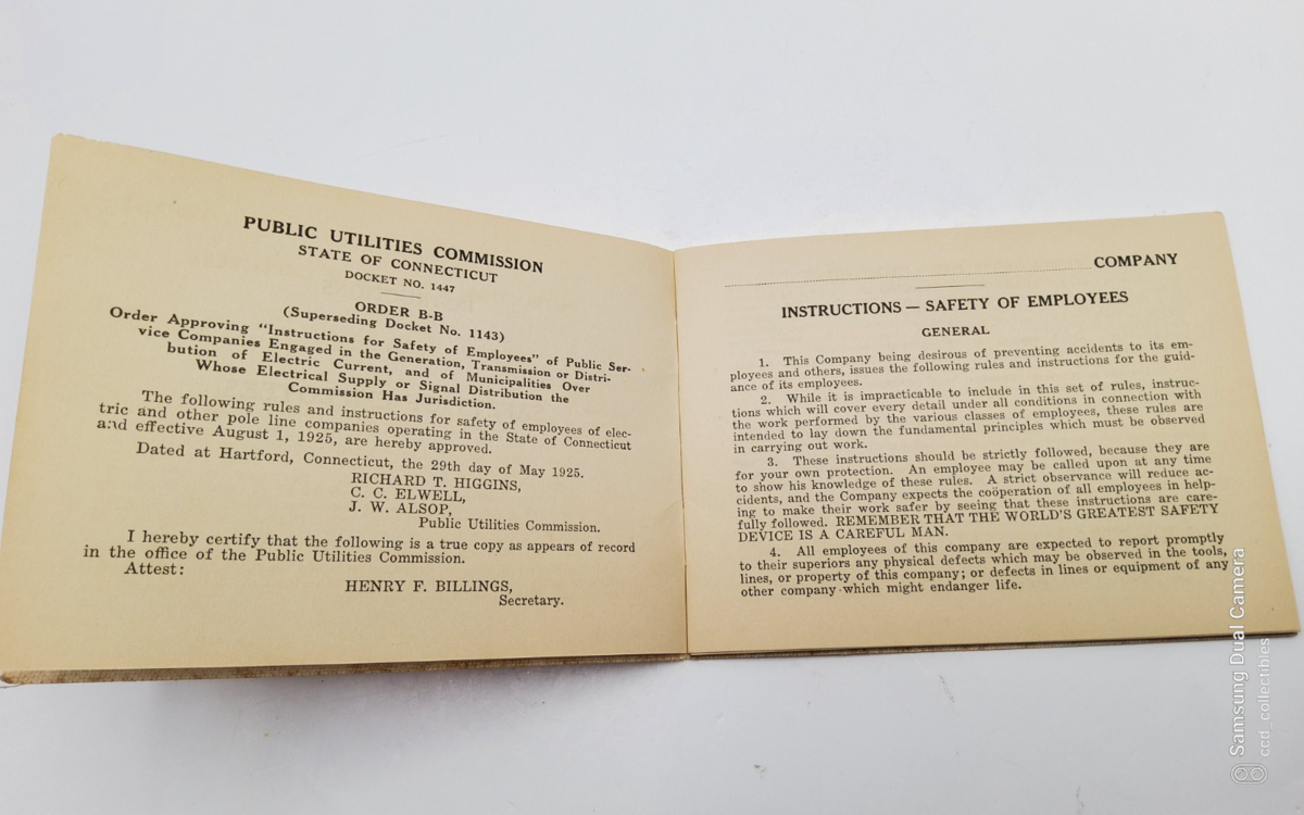 1925 Safety First Employee Manual Connecticut Public Utilities Vintage Booklet