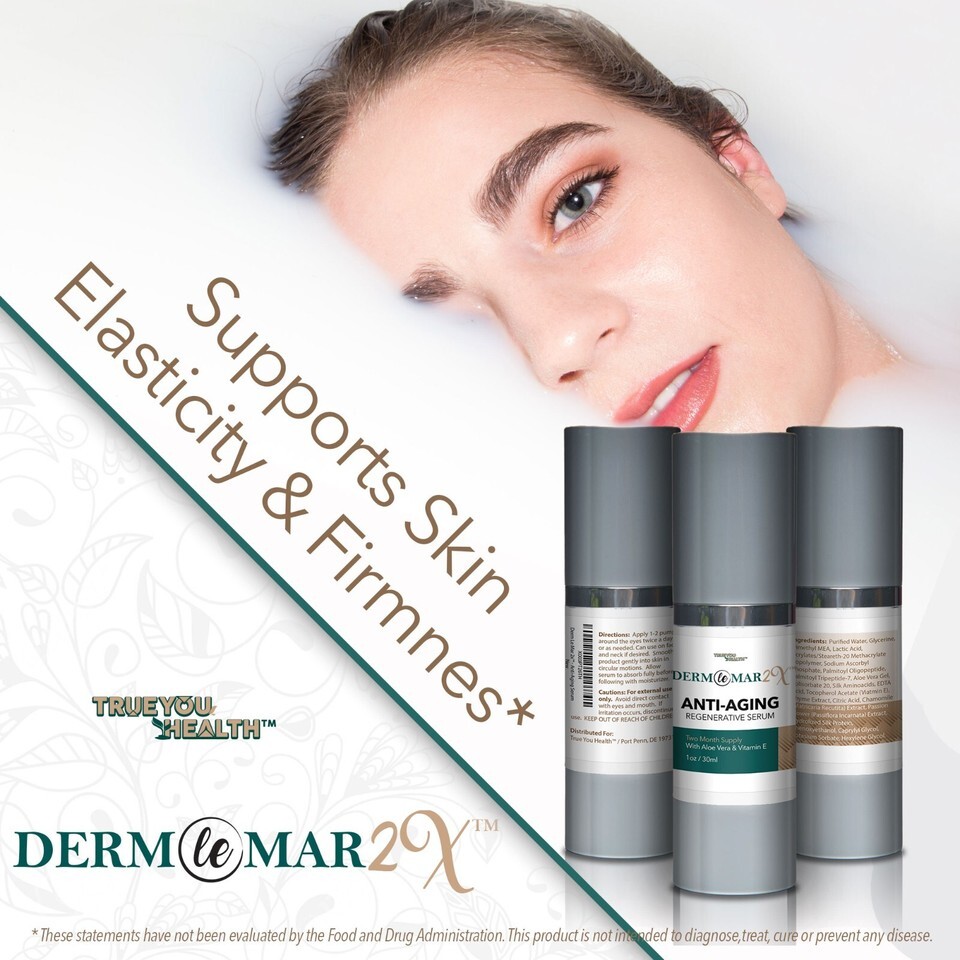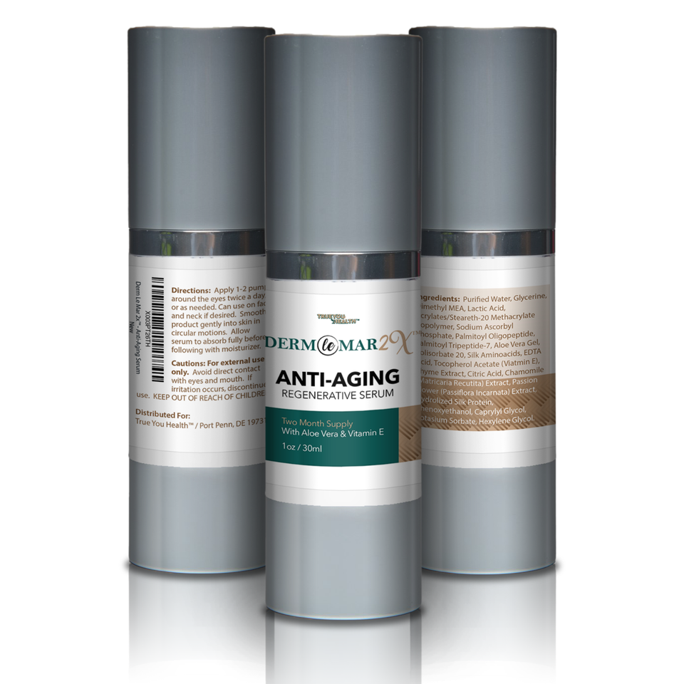 2x Derm Le Mar Anti Aging Regenerating Serum is a premium regenerative serum designed to help minimize and prevent the signs of aging. This premium serum contains a new and improved formula of powerful yet soothing blend of anti-aging vitamins, antioxidants, silk amino acids, and more that help bring out a youthful looking energized glow to your face and eyes. And each bottle contains a 2 month supply!