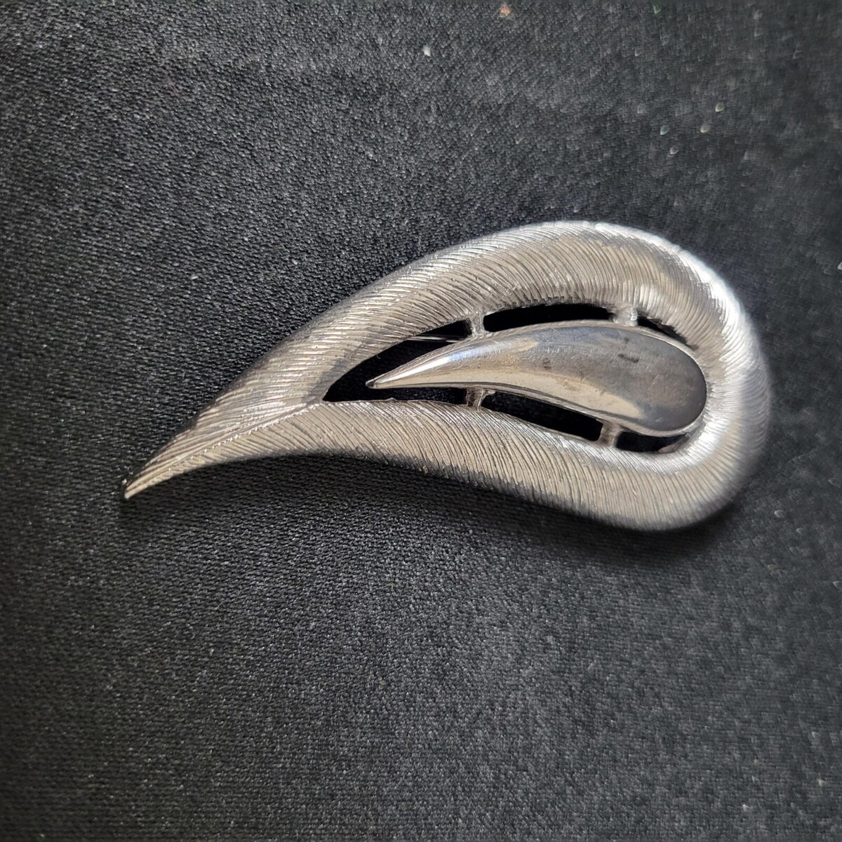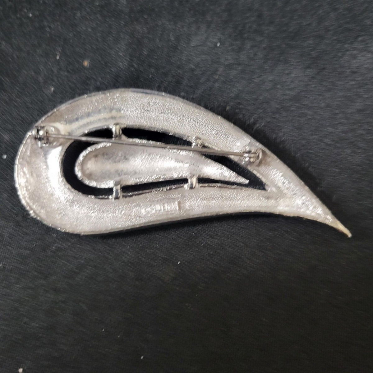 Signed M JENT Textured Swirl Silver Tone Vintage Brooch Pin Vintage Jewelry 3"