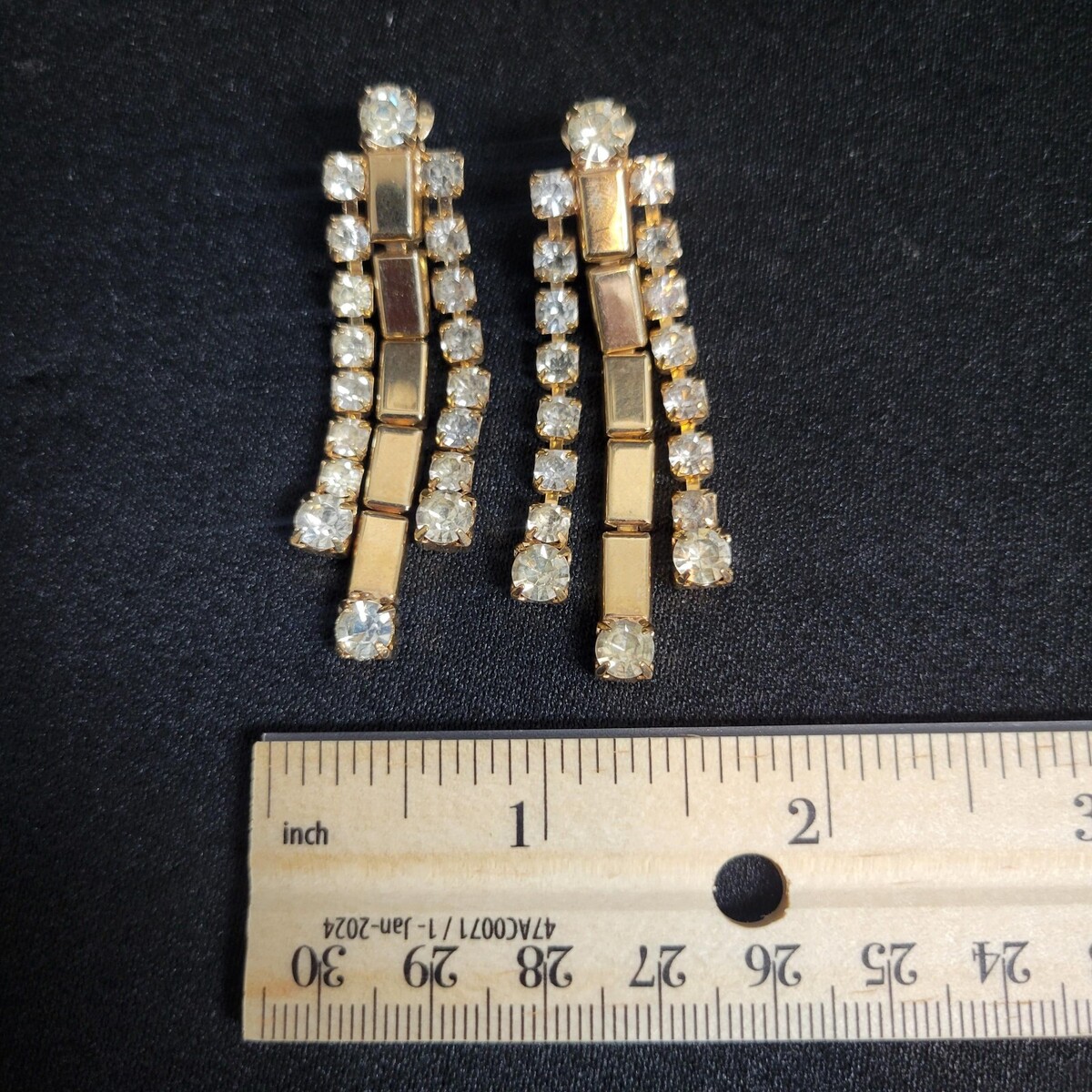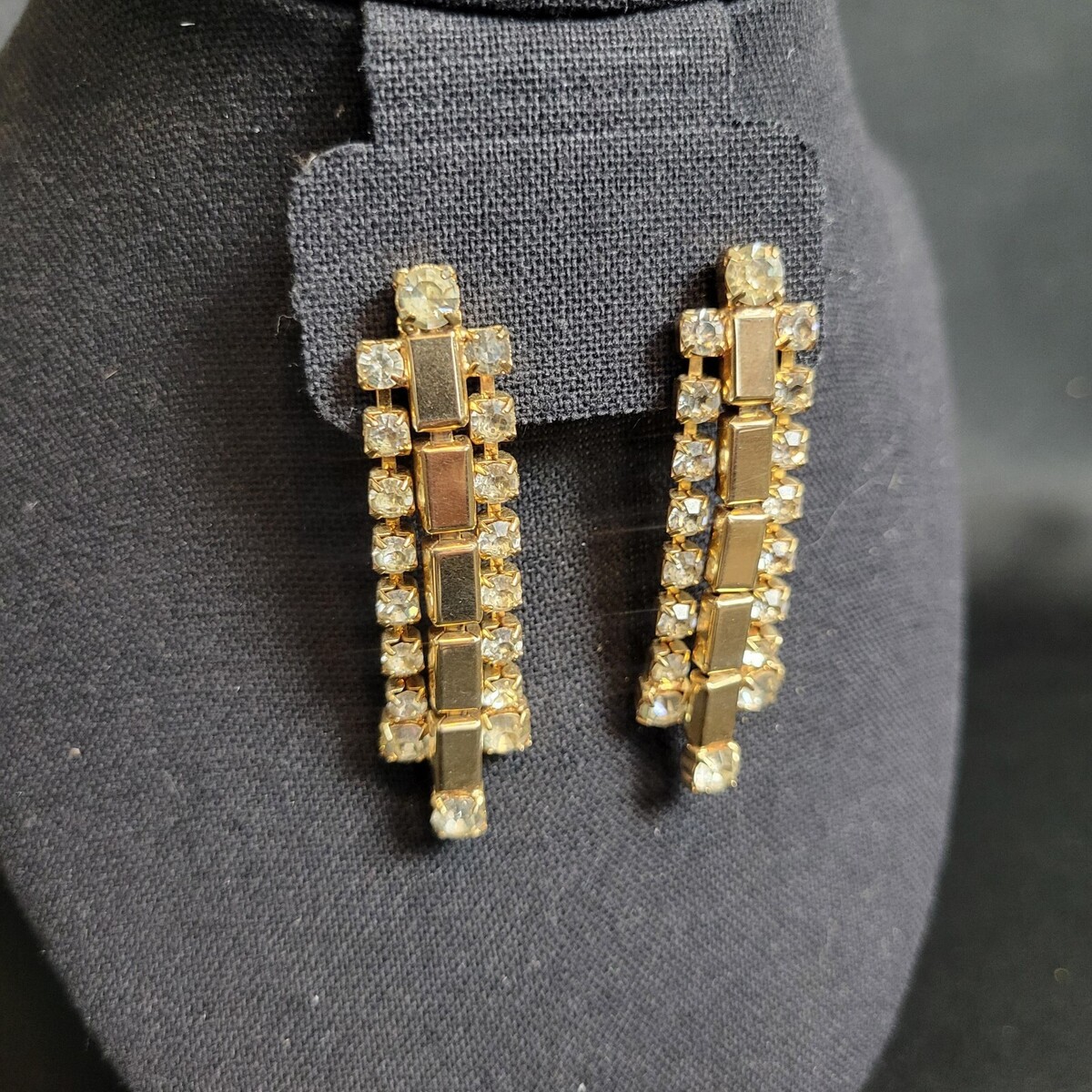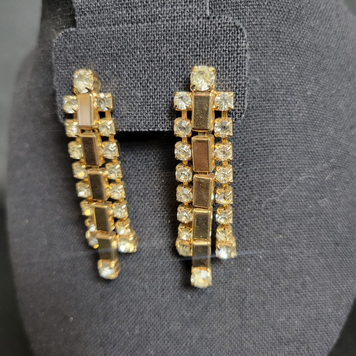 Sarah Coventry "Golden Ice" Clip Earrings Clear Rhinestones 1970s Vintage