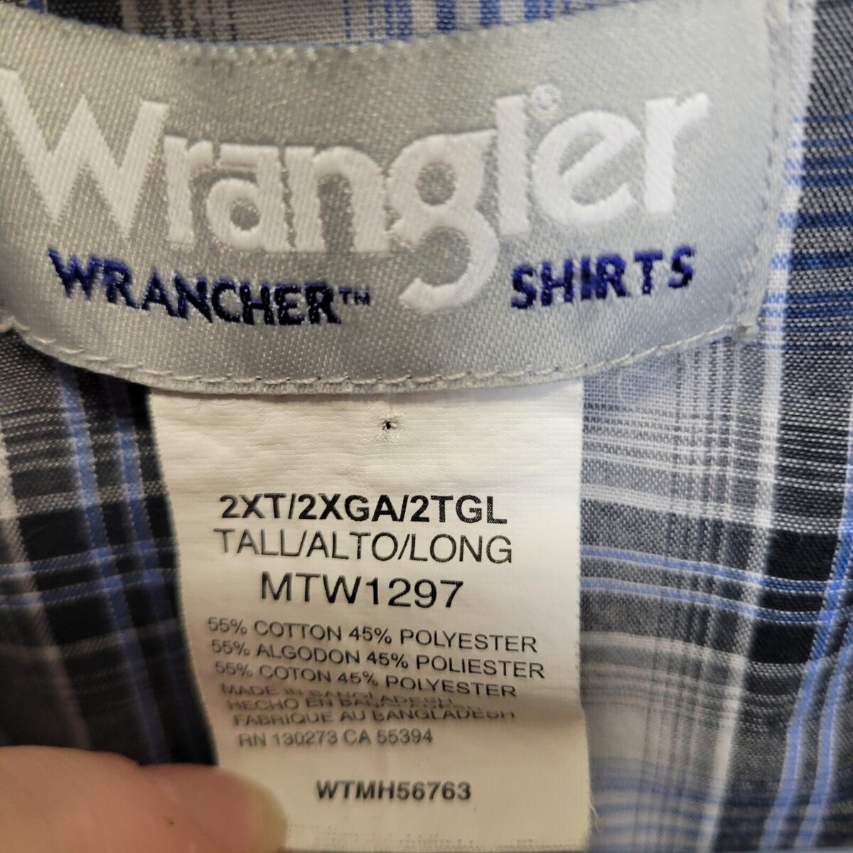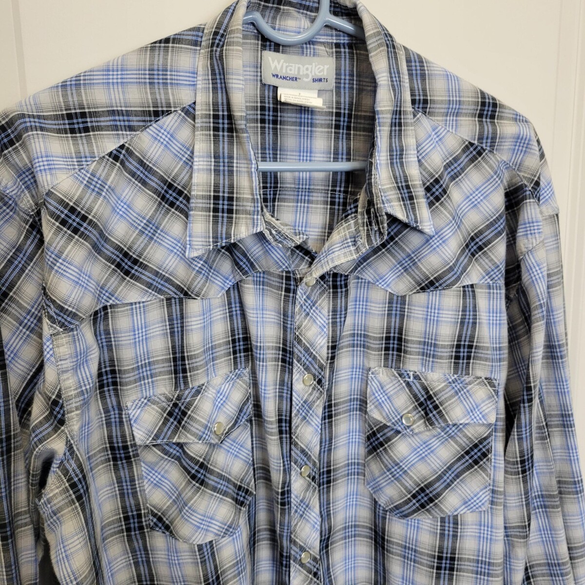 Wrangler Wrancher Pearl Snap Shirt Men Size 2XL Tall Blue Plaid Western Cowboy