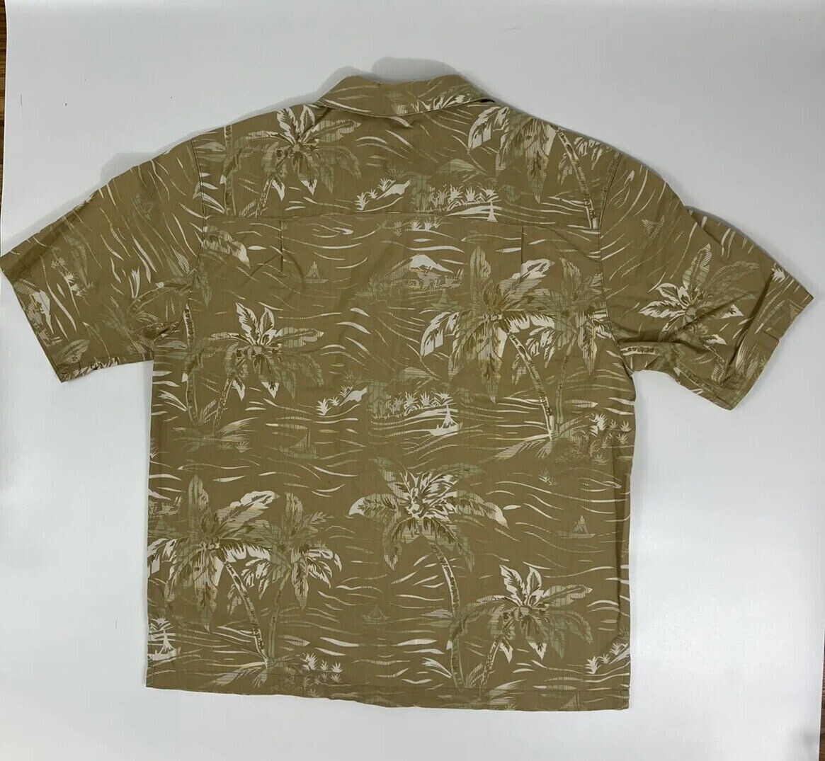 Woolrich Hawaiian Shirt Men's L Large Palm Trees Khaki Camp Button Down EUC VTG