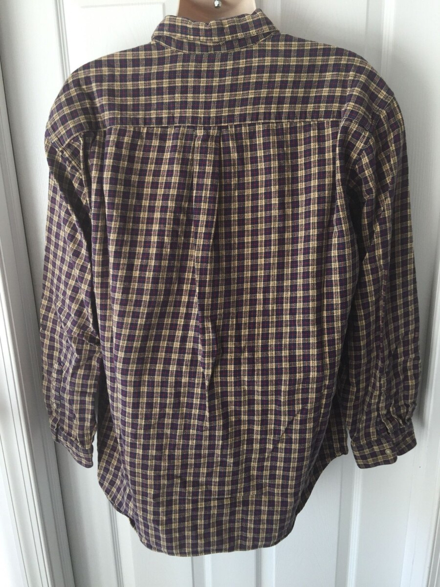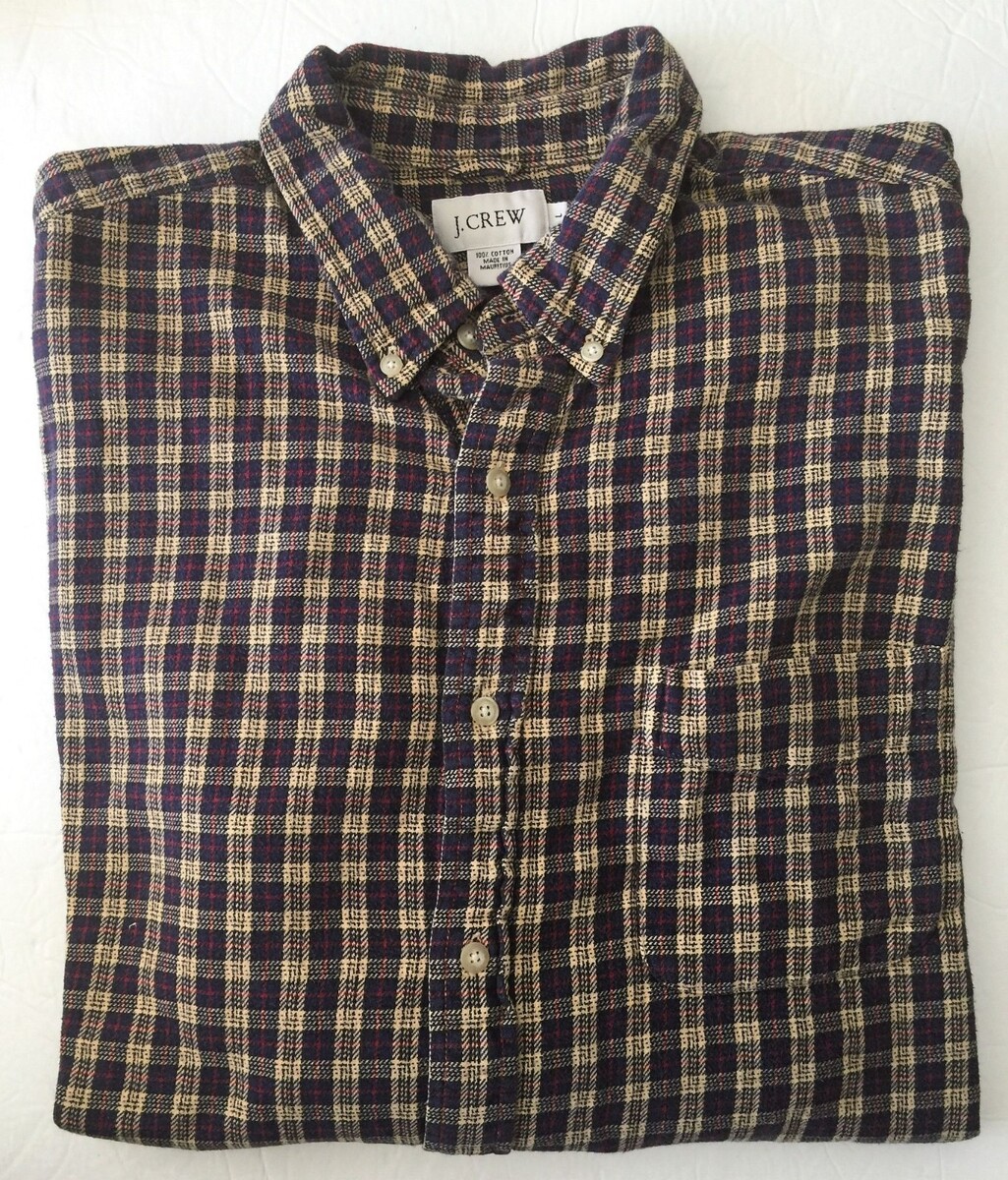 Mens Jcrew Plaid Navy Blue Yellow Checkered Shirt 100% Cotton Clothing Large L