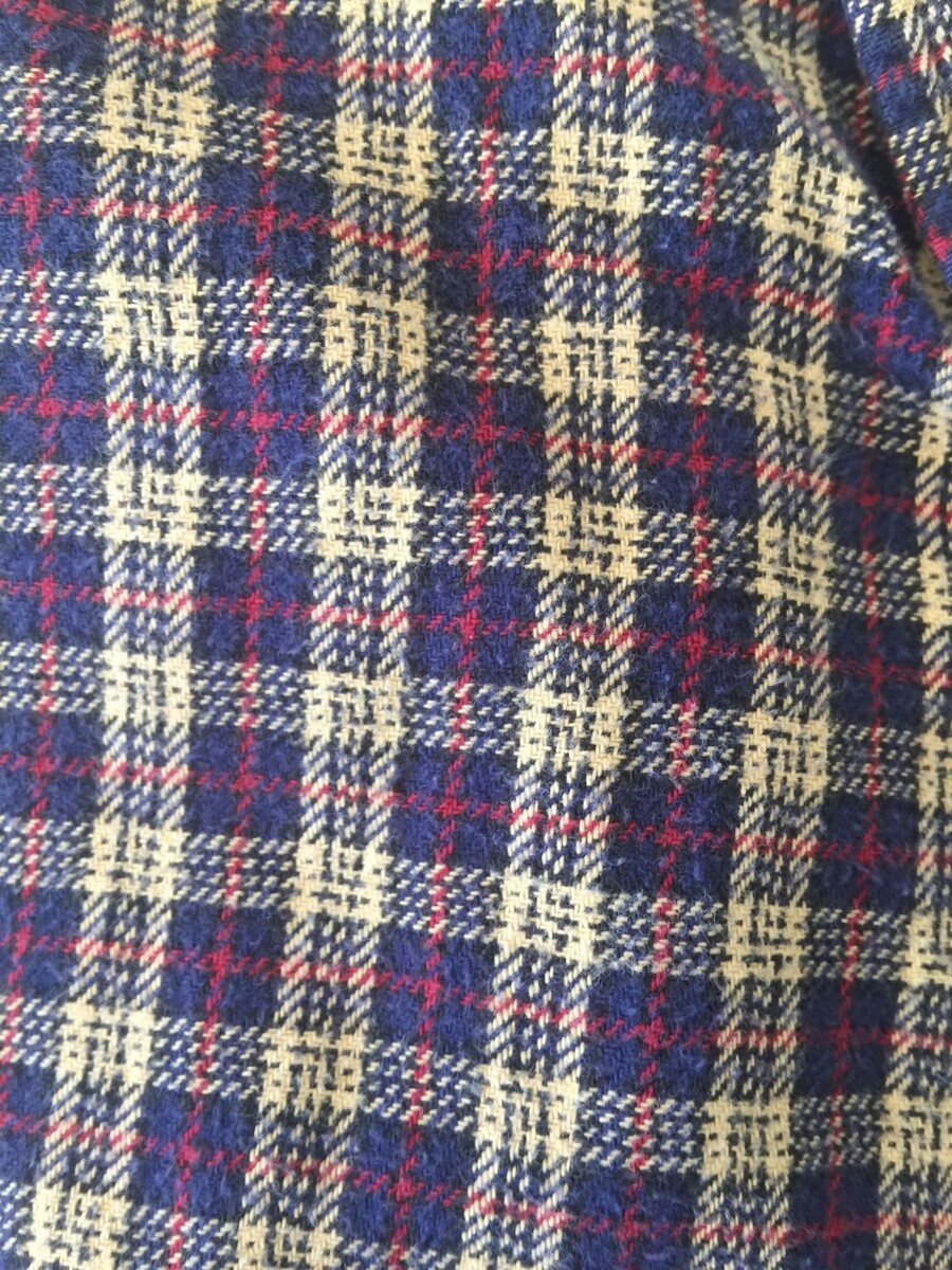 Navy blue, yellow, and red checkered pattern. Soft and clean. See photos for details.