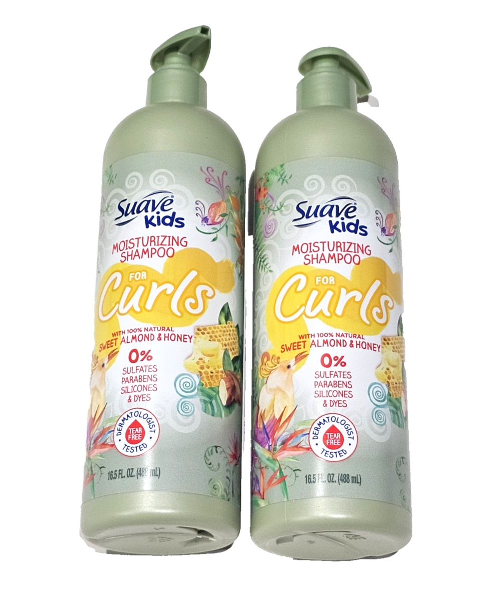 2 Pk Suave Kids Moisturizing Shampoo For Curls 100% Natural Sweet Almond Honey