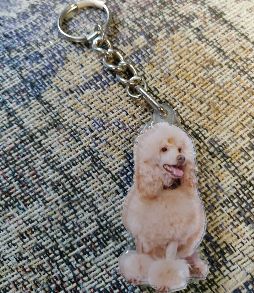 Cute White Poodle Dog Animal - Mirrored Back Sealed Keychain. Shipped with USPS First Class. Combined Shipping (for USA Customers Only)