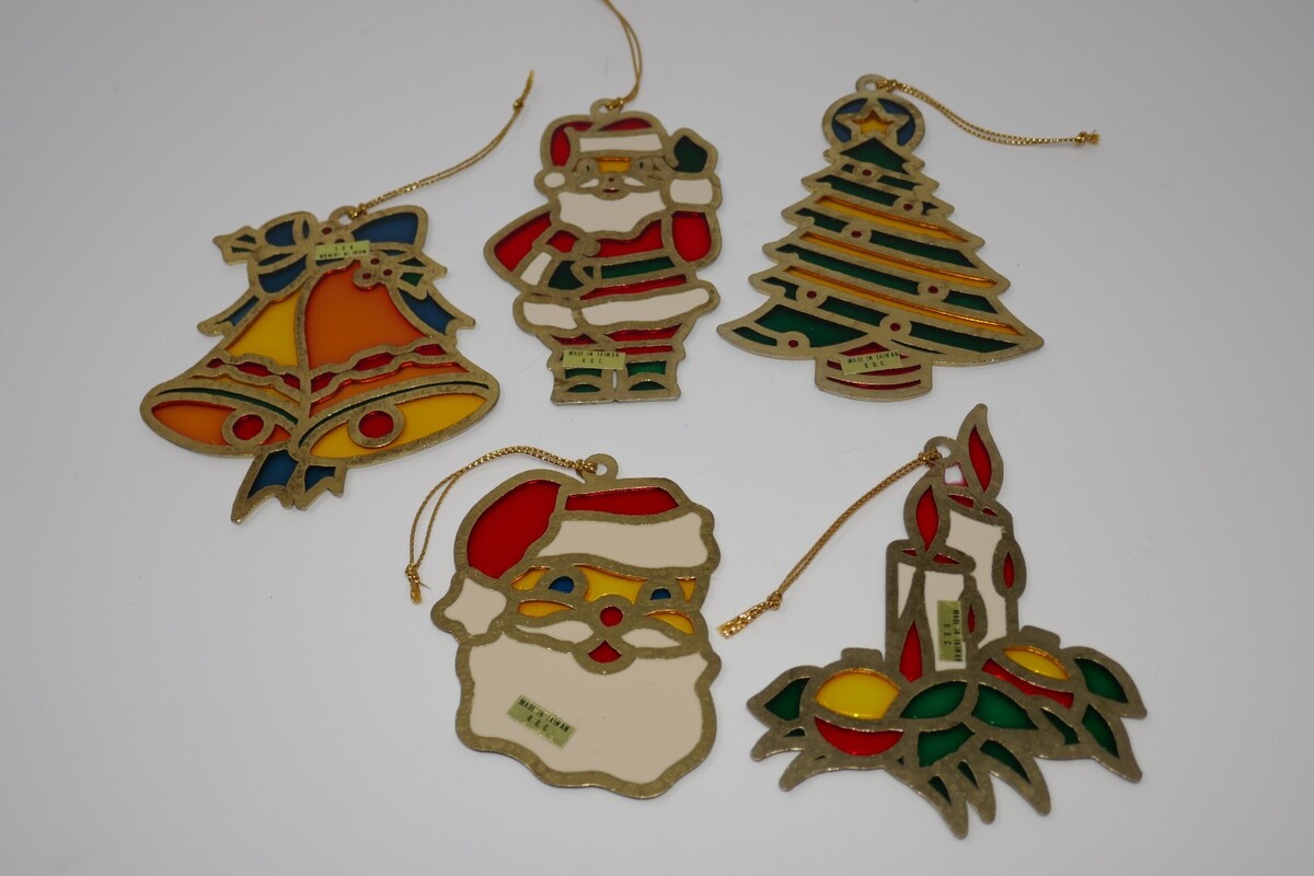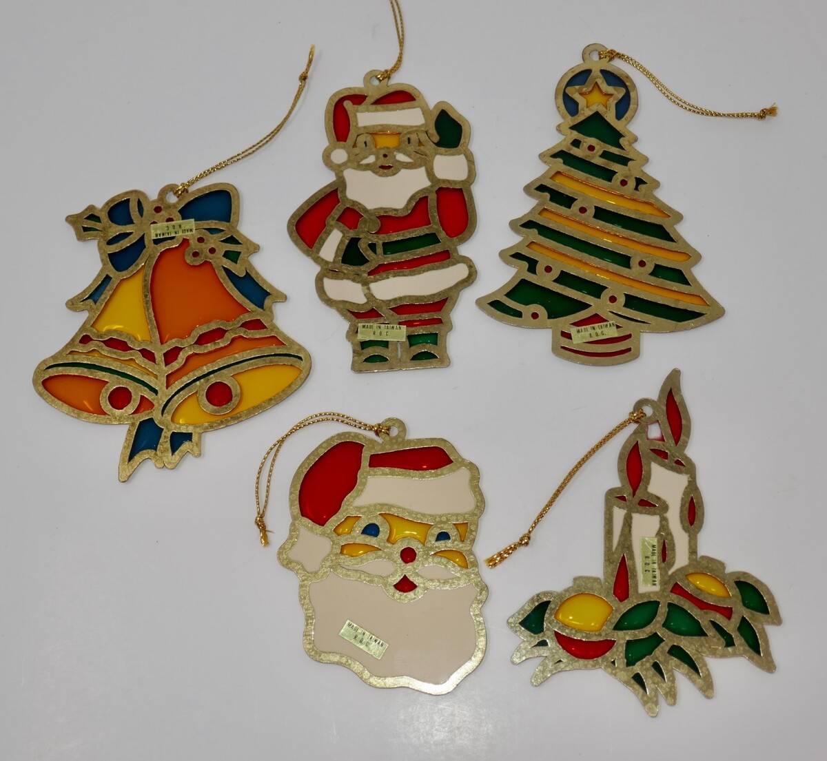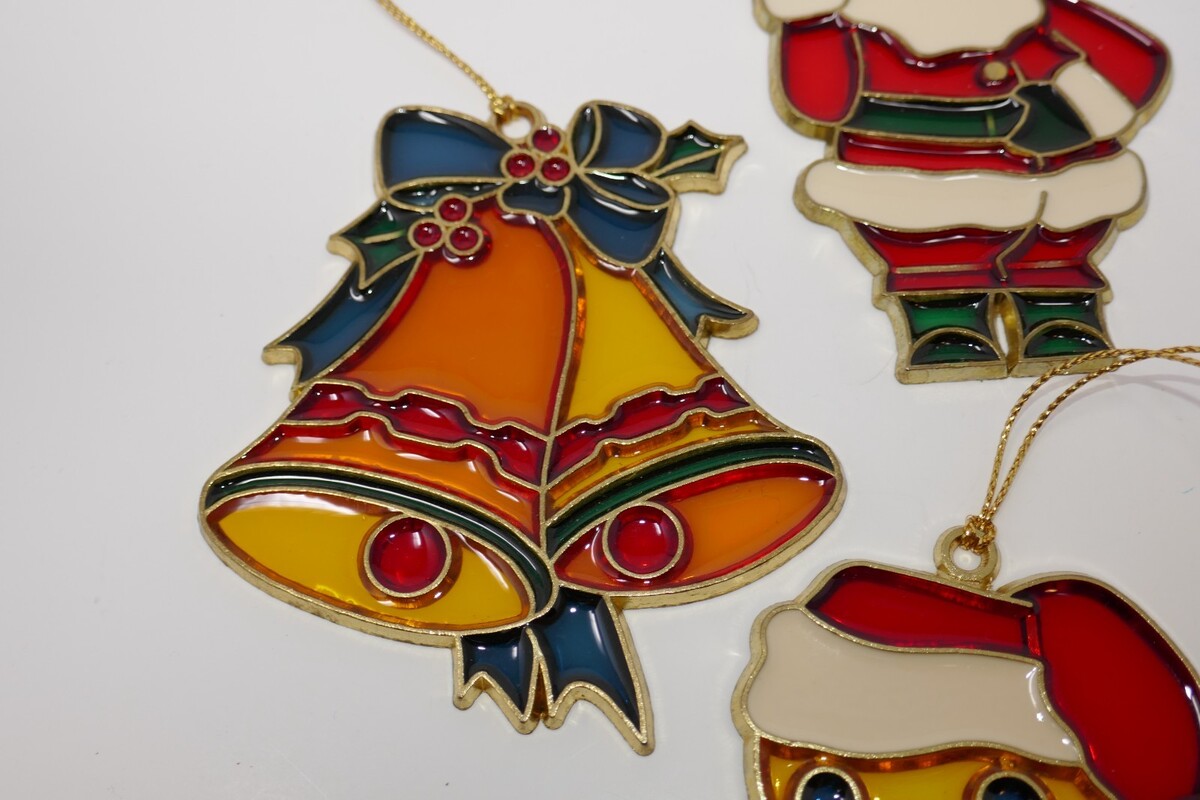 Faux Stained Glass Christmas Ornaments Sun Catchers Santa Bells Tree Candles