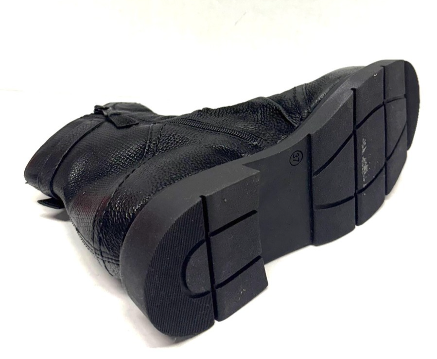 MIZ MOOZ RUCHED LEATHER BOOTIE SIDE ZIP BUCKLE 37EU / 7US BLACK Z-114