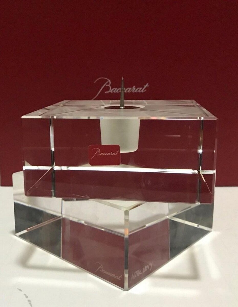 Baccarat Crystal Intangible Candlestick Holder Cubed Aric Levy 3.5" France NEW