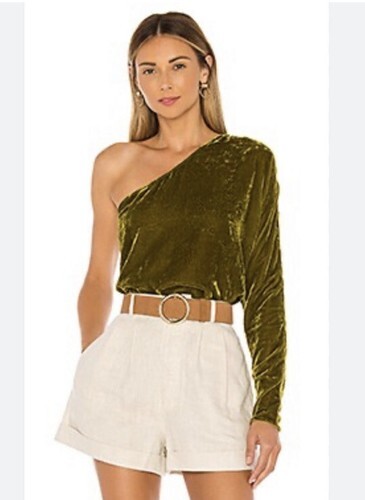 Velvet Long Sleeve One Shoulder Top Size XS EUC Revolve Tularosa 'Nova' Moss