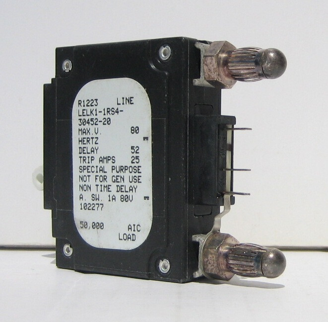 LELK1-1RS4-30452-20 .110 Quick Connect, 1 Handle, 20 AMPS, 80 VDC, Alarm Switch, Circuit Breaker, Electrical Trip, Single Pole, Special Purpose, Stud TERMINALS, Trip AMPS 25, Trip