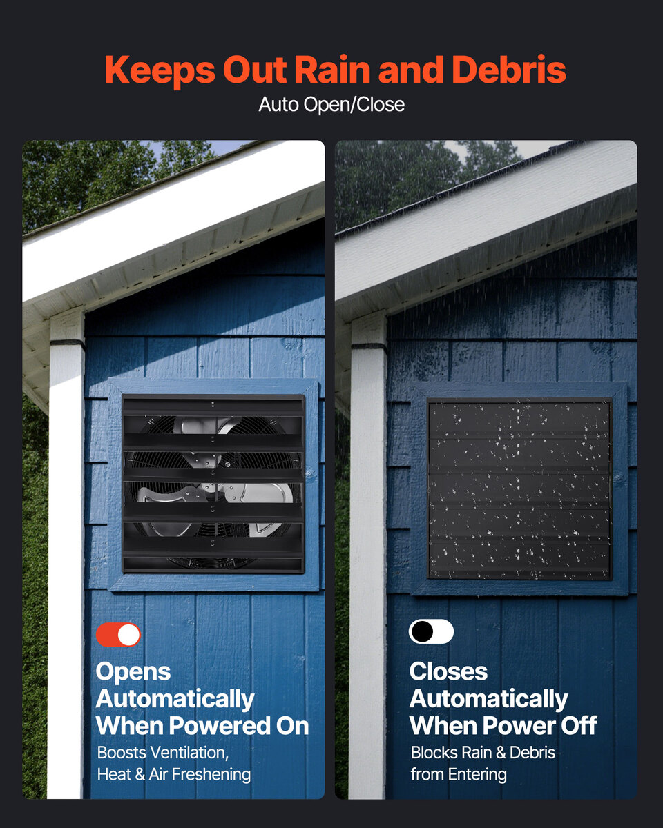 Rain Guard: Shutters open when powered for ventilation and deodorizing, then close when off to block rain and small things, reliable protection for an attic exhaust fan setup