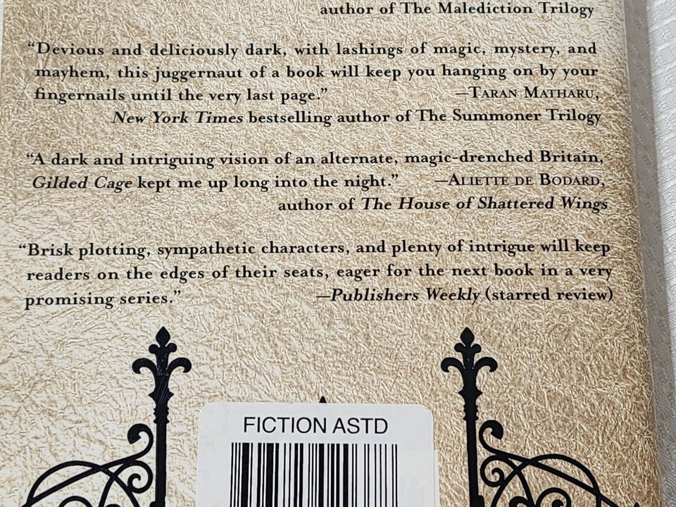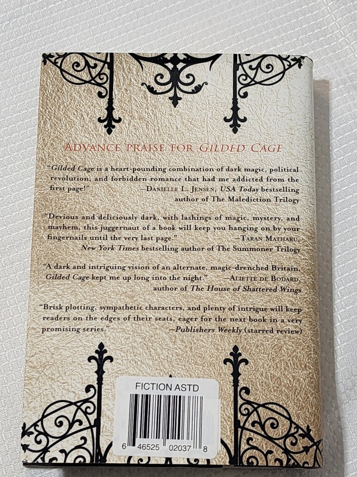 item: "Gilded Cage" by Vic James is the first book in the enthralling "Dark Gifts" series, which delves into a dystopian Britain where magical aristocrats rule and the common people are forced into a decade of servitude. The narrative is built on a foundation of intense class struggles and the dark undercurrents of magical manipulation. This novel weaves together the lives of its characters with sharp twists and deeply embedded political intrigue. As the fates of the powerful and the powerless collide, "Gilded Cage" examines the complexities of power, freedom, and resistance through its multi-layered storytelling. With its rich world-building and complex character dynamics, Vic James presents a compelling tale that challenges the boundaries between oppressor and oppressed, making it a standout addition to the dystopian genre.