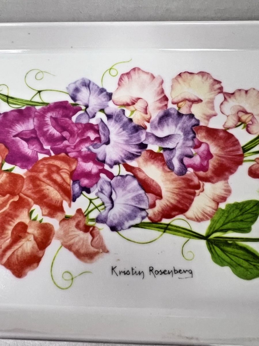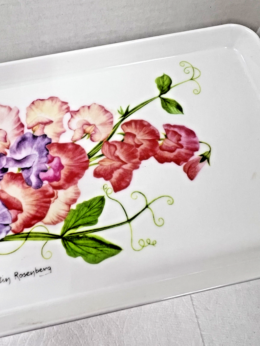 VTG Melamine Italy Tray Sweat Pea Floral Italian Design Imports LTD 15 X 6" Kristin Rosenberg no chips cracks or damage
