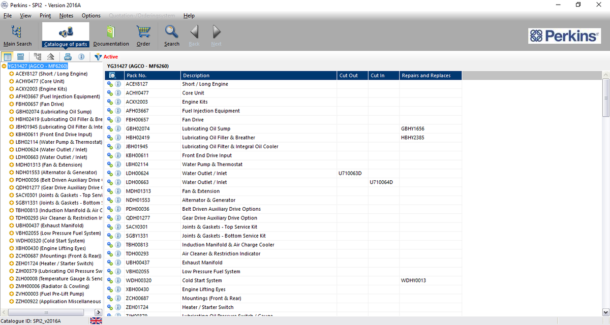 Perkins SPI2 2018A Service and Parts Catalog includes the detailed list of spare parts of engines Perkins. The program allows you to search specific parts by part numbers, description, casting numbers.