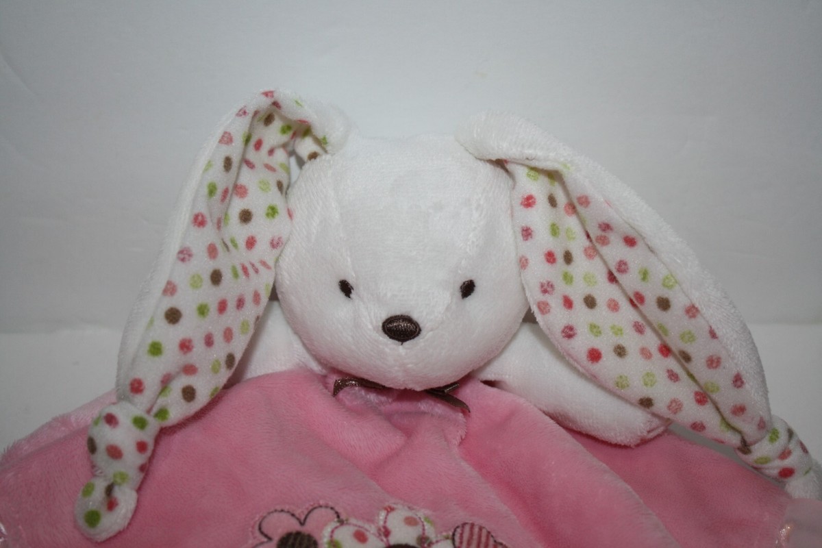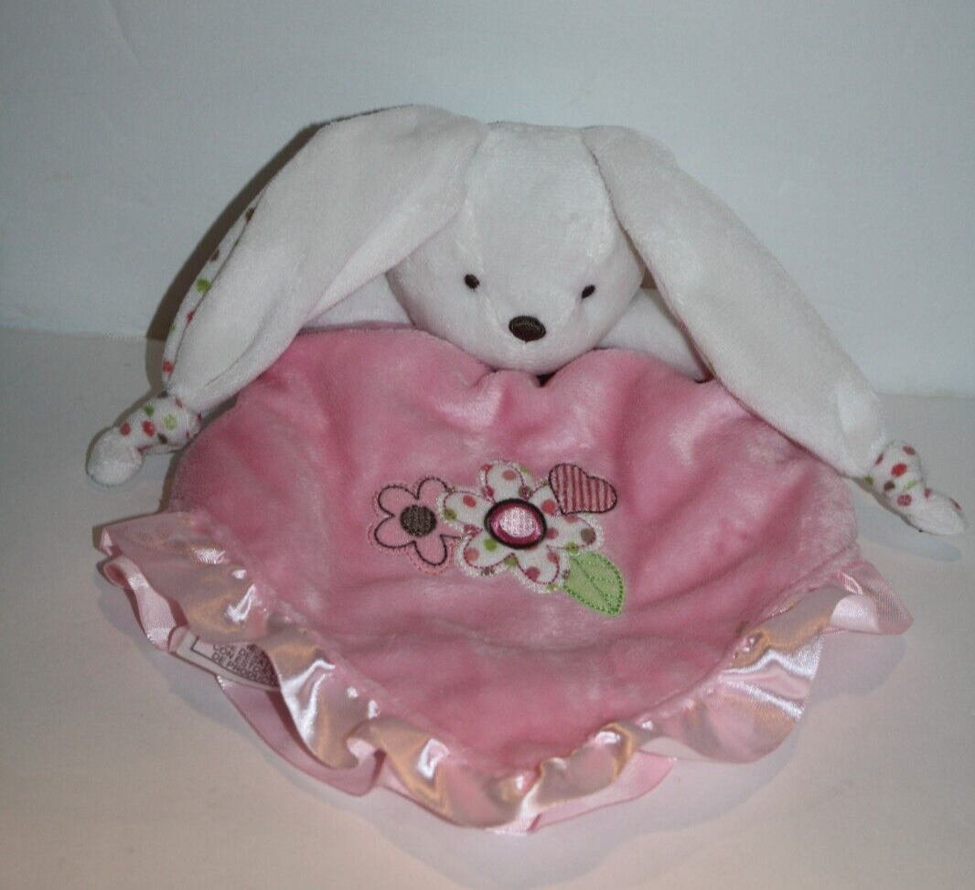 Carters Bunny Security Blanket Pink Rattle Flowers Polka Dot Knotted Ears #2