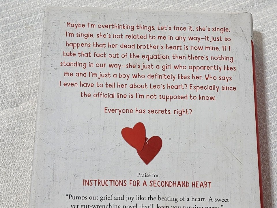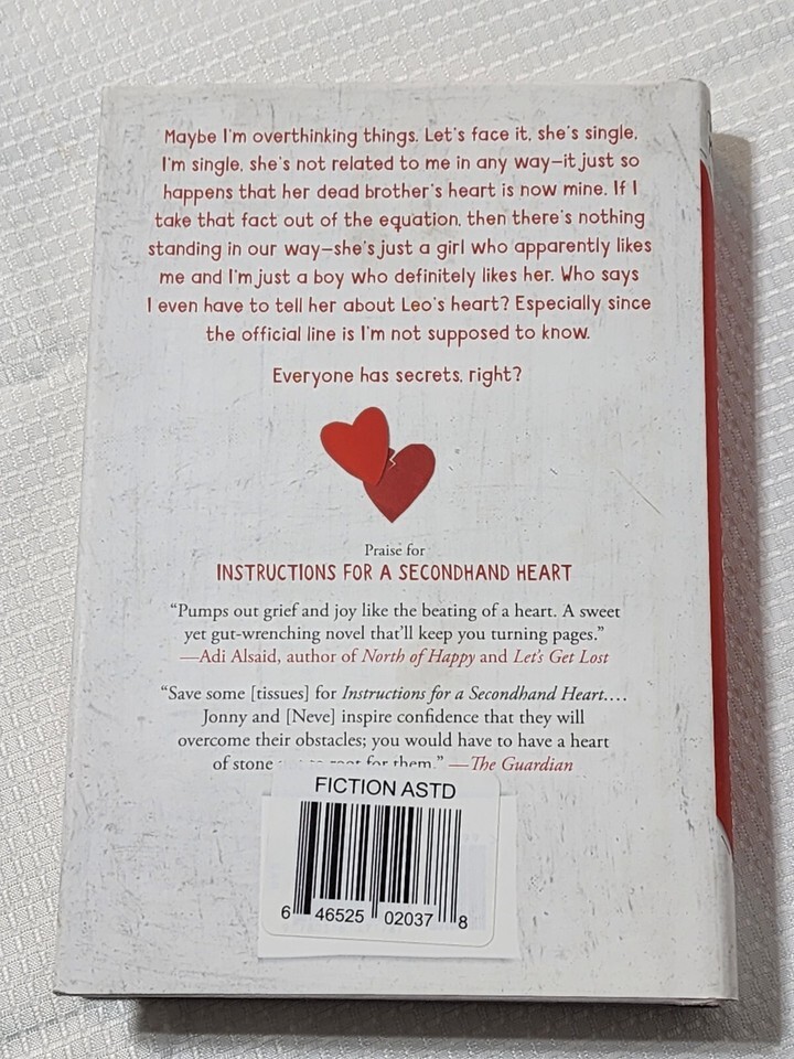 item: "Instructions for a Secondhand Heart" by Tamsyn Murray unfolds a deeply moving narrative that tugs at the heartstrings. This novel encapsulates the journey of Jonny, who receives a heart transplant and the emotional complexities associated with knowing that his second chance at life came at the cost of another's. As he struggles with survivor's guilt and a deep-seated curiosity about his donor, Jonny finds solace in Neve, the sister of his heart donor. The layers of their relationship develop as they grapple with grief, secrets, and the meanings of second chances. The novel deftly captures the bittersweet essence of life's precariousness and the human capacity for resilience and love, making it a touching exploration of life, loss, and love.