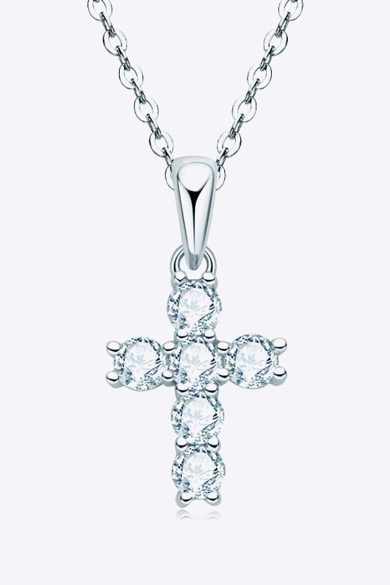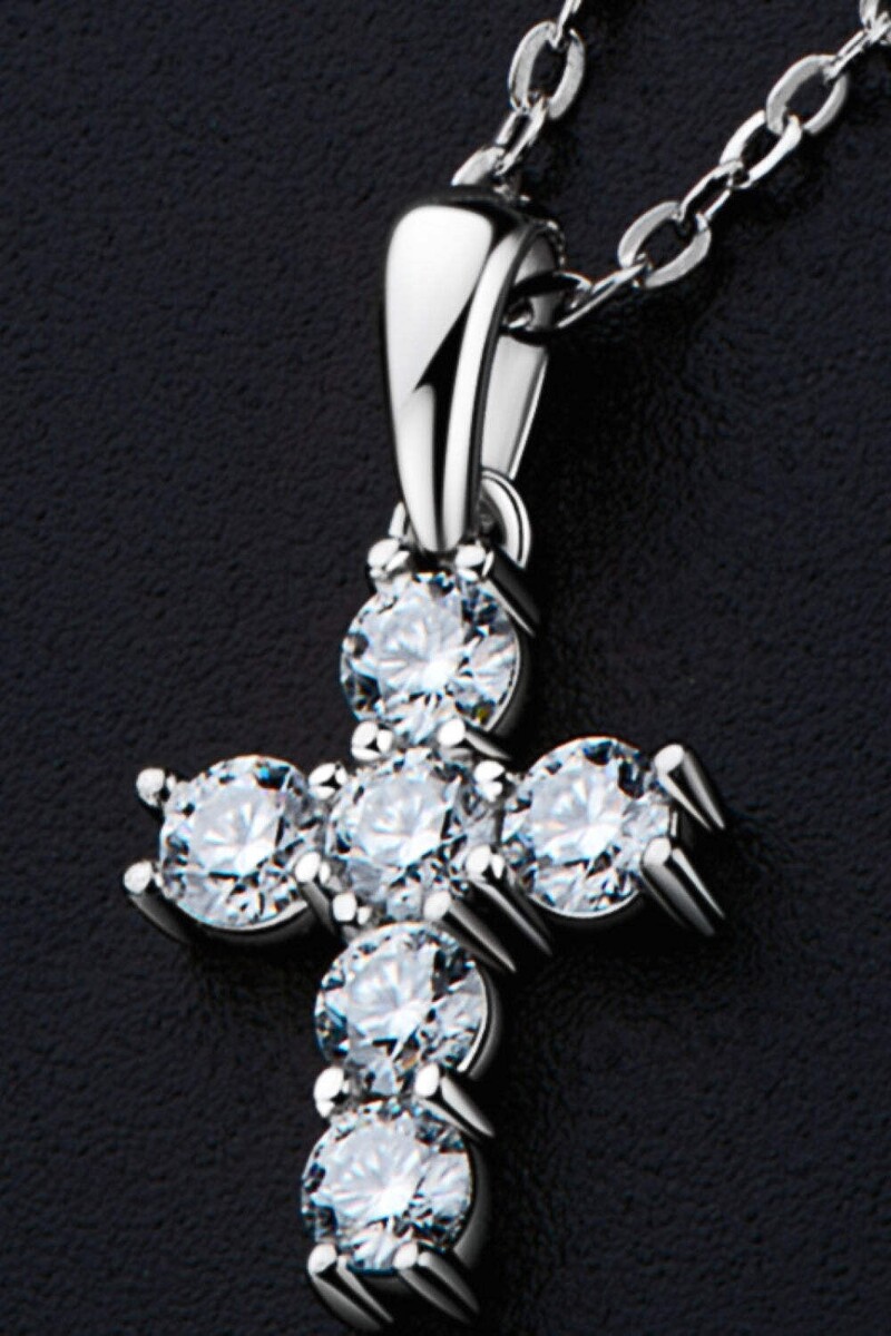 925 Sterling Silver Cross Moissanite Pendant Necklace