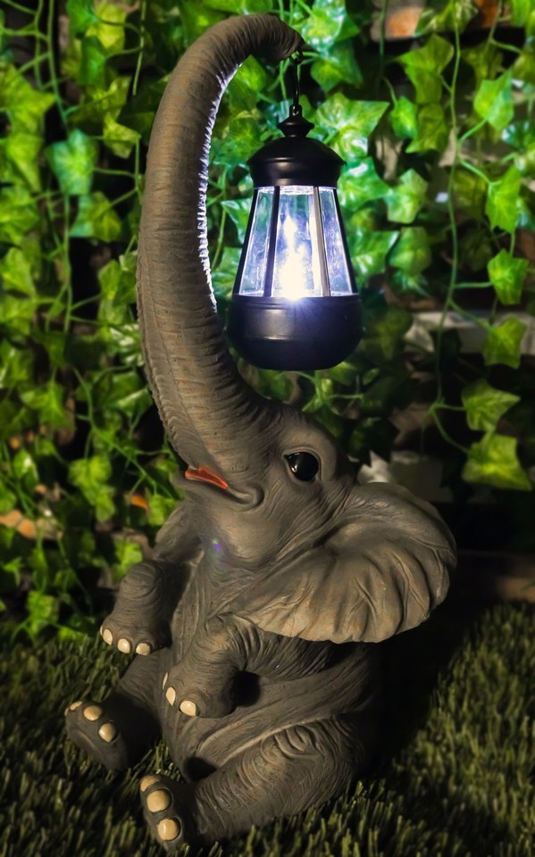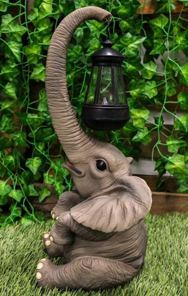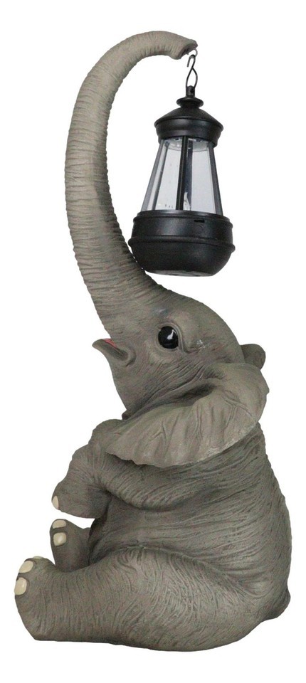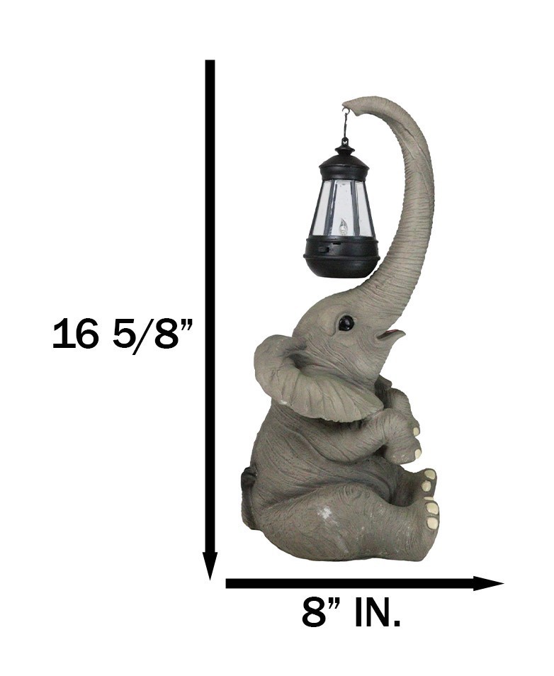 Ebros Elephant Pachyderm Safari Figurine W/ Solar LED Light Lantern 16.25"H