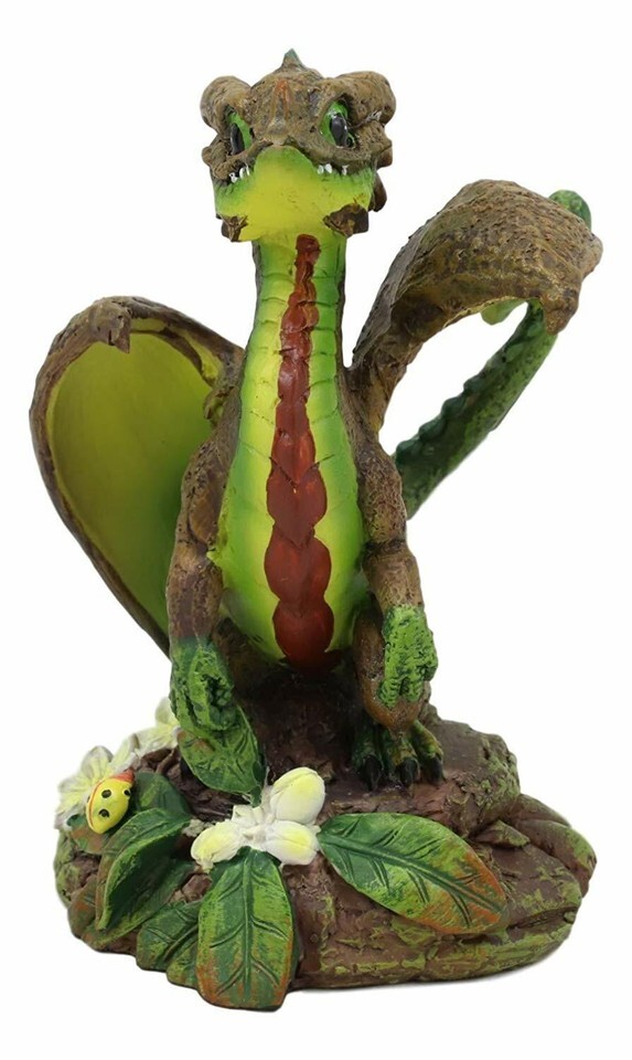 ? This Colorful Green Thumb Garden Fruits Dragon Figurine is made of designer composite resin, hand painted and polished individually. Color Tone may vary slightly from pictures.