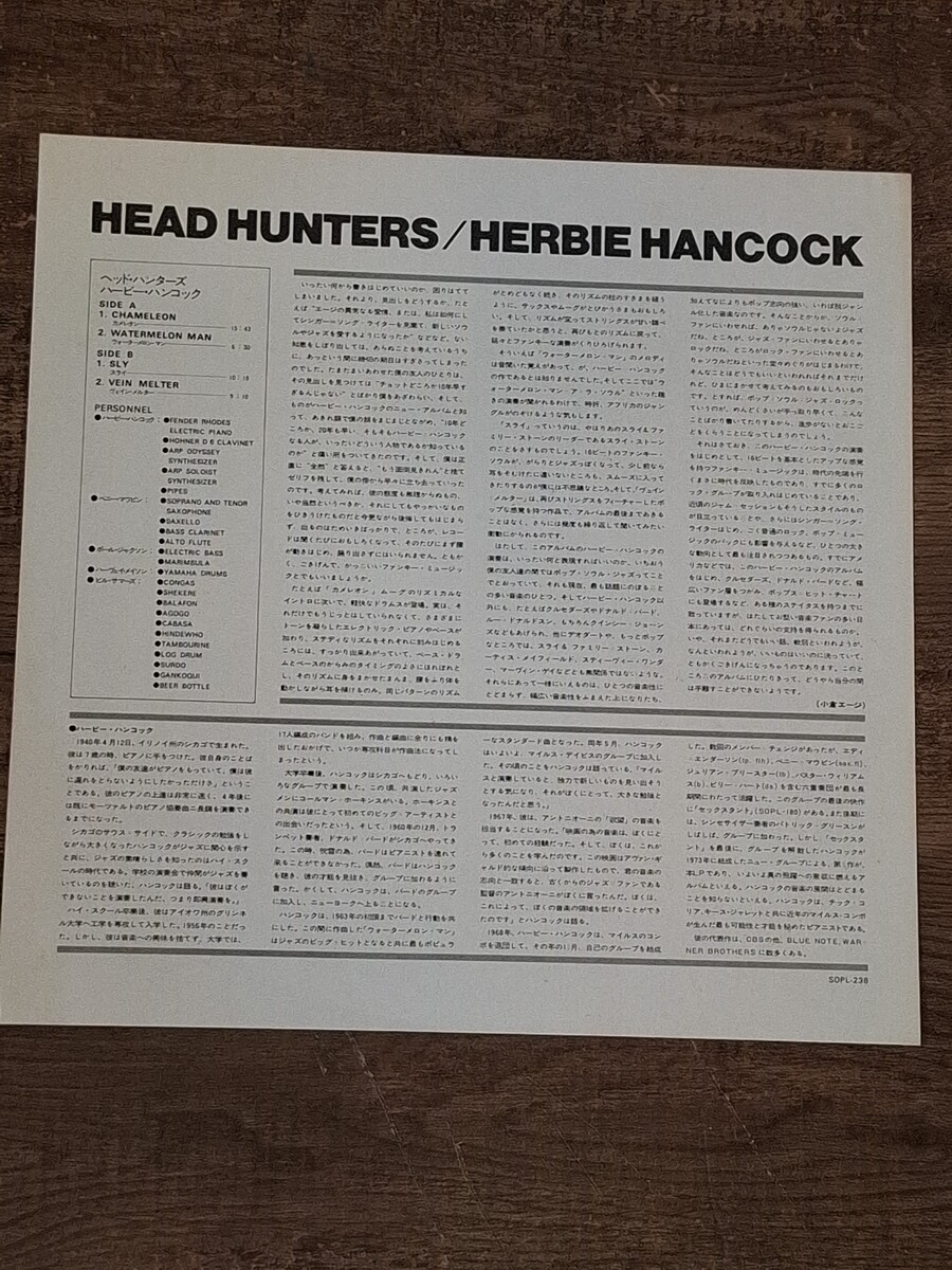 Herbie Hancock – Head Hunters LP (Japan Press SOPL-238, OBI, Insert)
