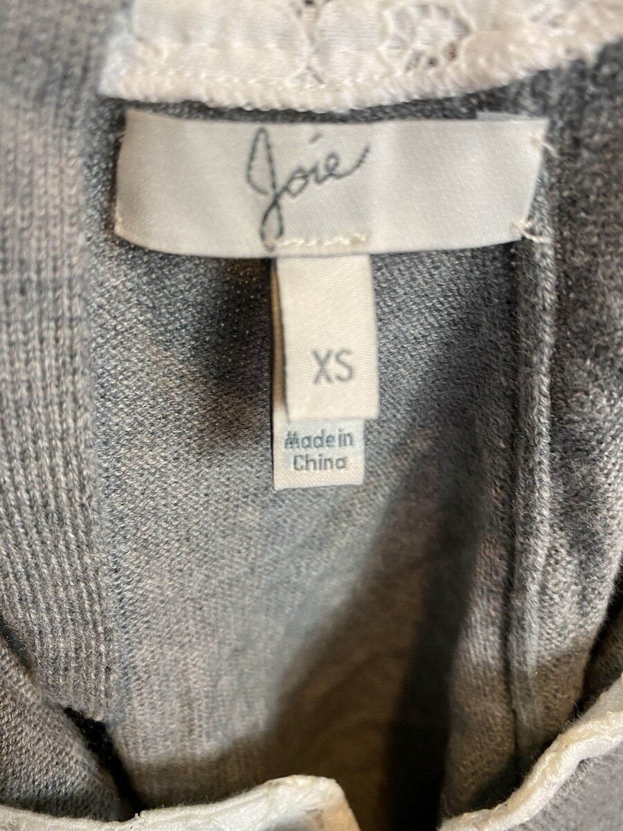 Joie Gray with Lace Crew Neck Long Sleeve Sweater Size XS