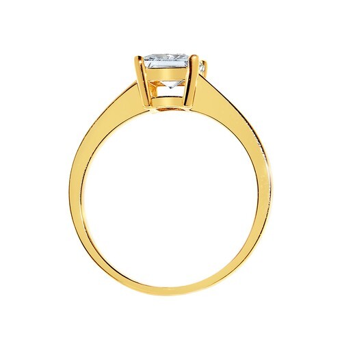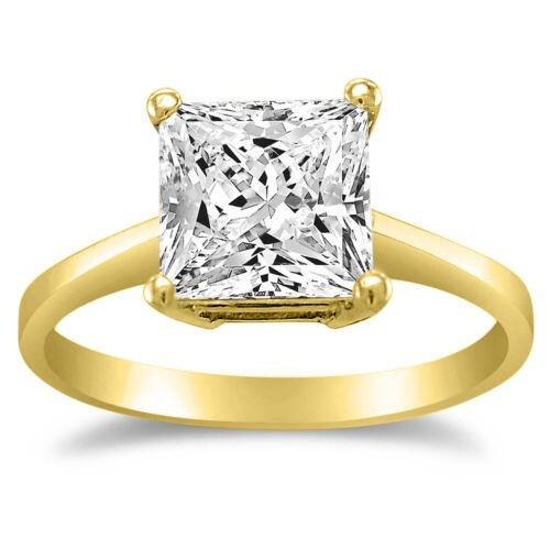 This classic princess-cut solitaire engagement ring is designed to showcase brilliance from every angle. Crafted from genuine 14k yellow gold, the polished band provides the perfect foundation for the central 1ct Diamonette stone ? a premium cubic zirconia that mirrors the sparkle of a natural diamond.