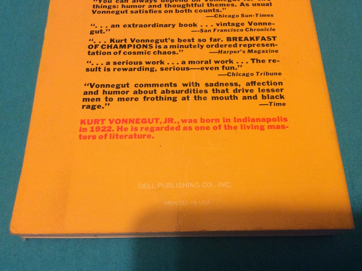BREAKFAST OF CHAMPIONS by KURT VONNEGUT, JR. - Softcover - SECOND PRINTING