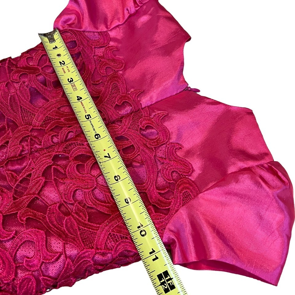 Halabaloo Red Laser Cut Lace Dress Girls 7 Satin Lace Short Sleeves Puff Skirt