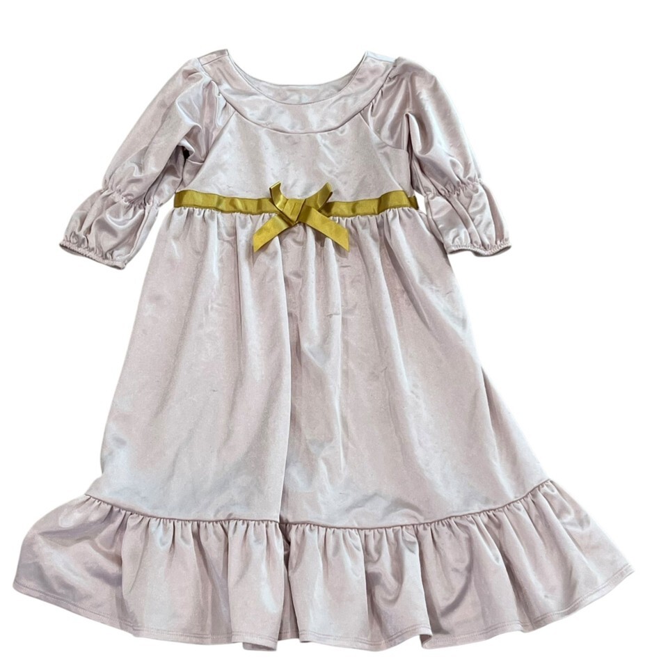 This pink satin pajama nightgown features charming yellow ribbon accents. Suitable for girls (this was my daughter's favorite and I sized up until she reached the last size on this).
