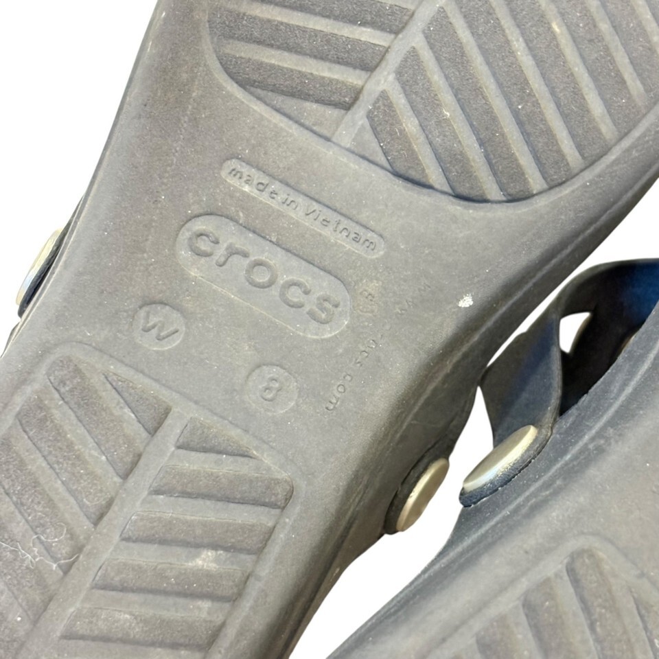 Crocs Womens Black Sanrah Slip-On Silver Circle Ring Sandals Flip Flops Size 8