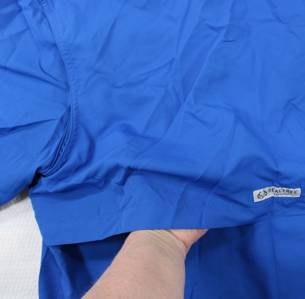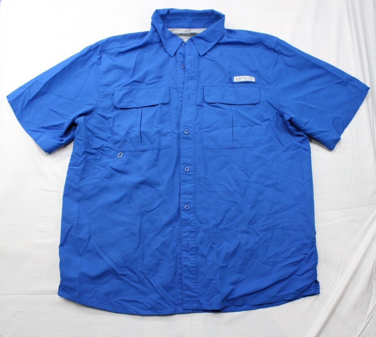Realtree Fishing Blue Short Sleeve Button-Up Shirt Large For Outdoor Enthusiasts