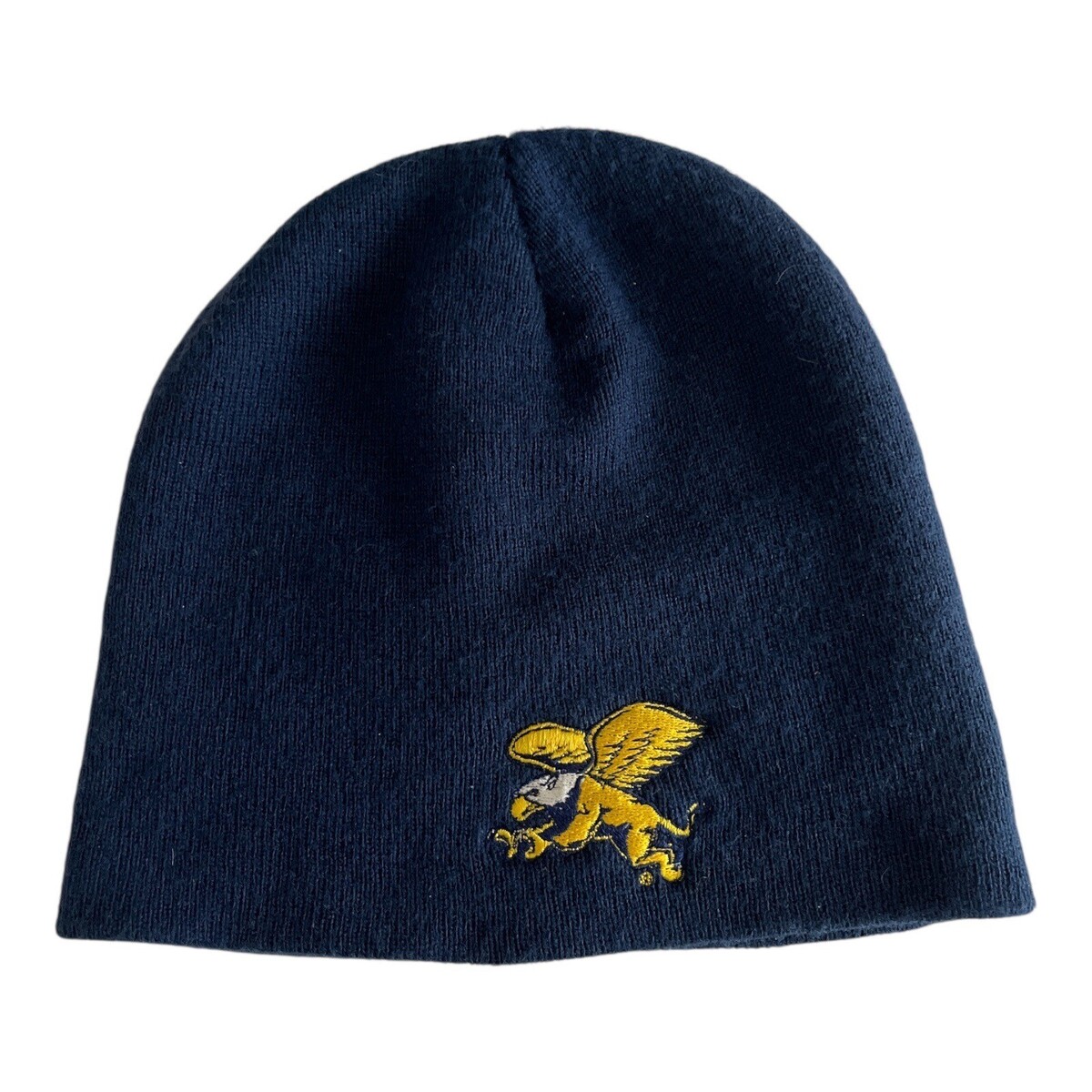 Vintage ML Caps Navy Knit Beanie with Winged Griffin Aviator Logo