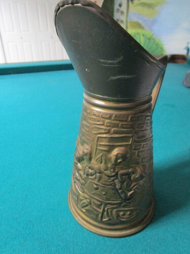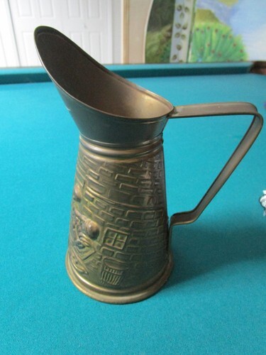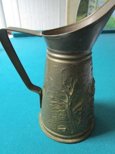 TABERN BRASS PITCHER JUG HAMMERED DRINKING SCENE 7 3/4"