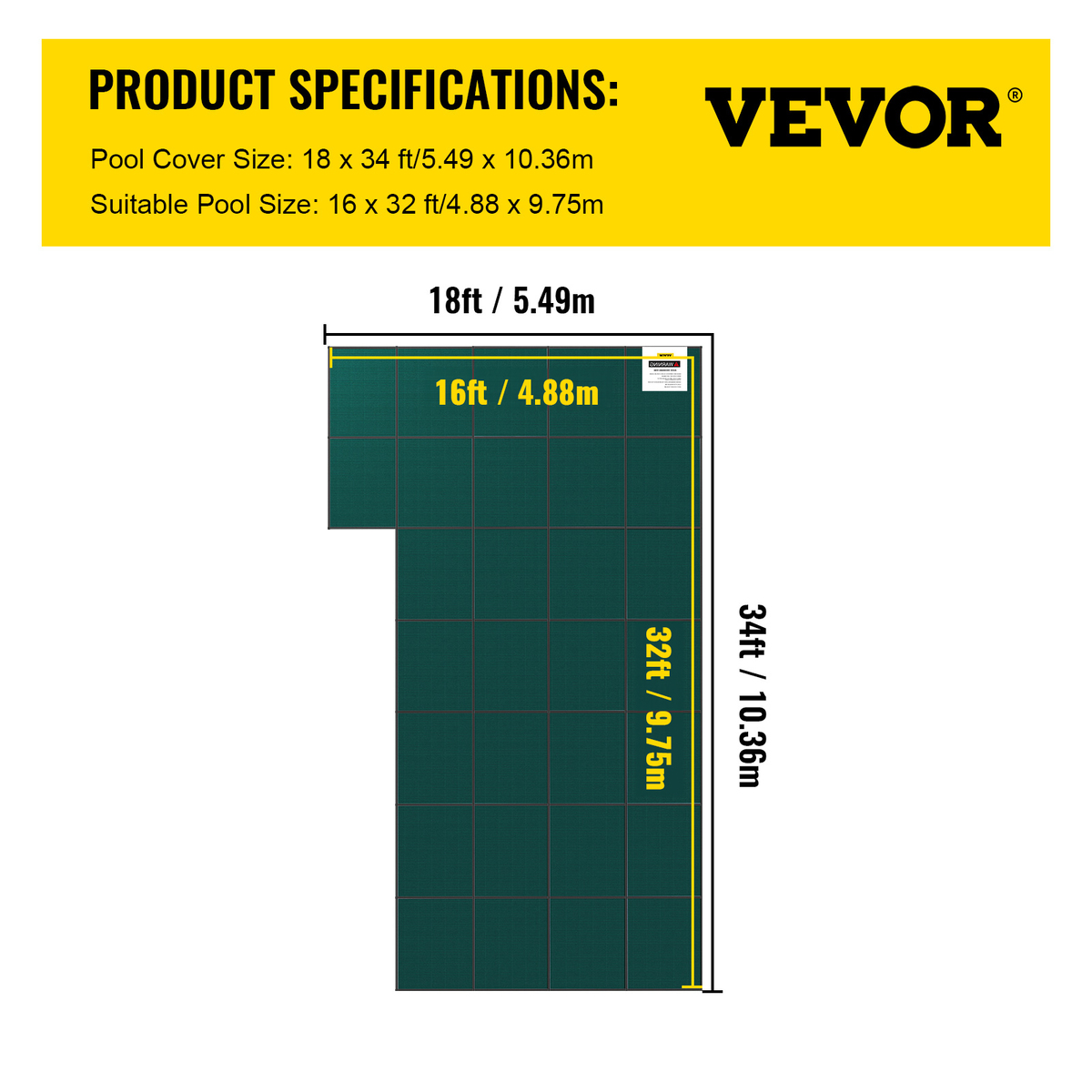 Fits a 16 x 32 Ft Pool: Pool Cover Size: 18 x 34 ft. Left Step Size: 4 x 8 ft. The actual cover size is 2 ft larger than the ordered pool size, ensuring no stretching and perfect covering. Before ordering, please measure your pool dimensions first and always select a cover based on your pool size. Ideal for most types of pools at home, garden, or hotel. If pool protection is what you need, then we got you covered.