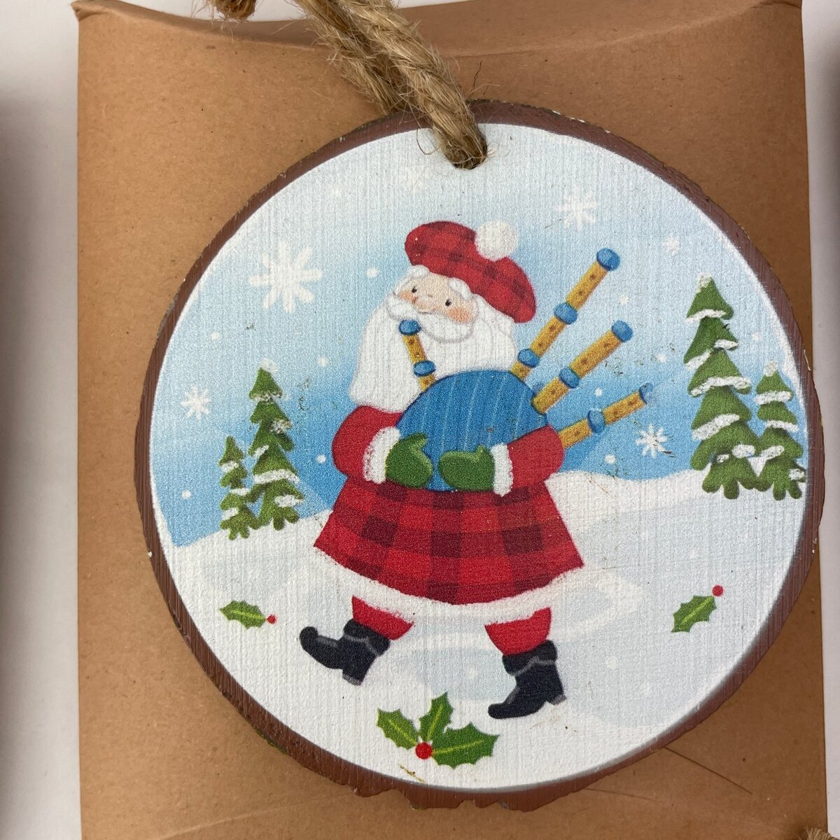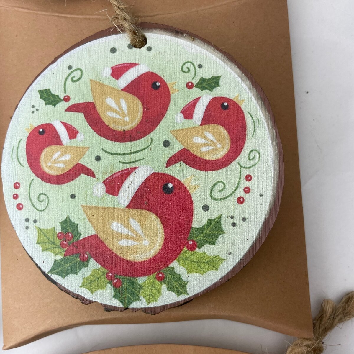 Measuring approximately 3 inches in diameter, these ornaments are easy to hang with their attached twine loops. Crafted from resin to simulate a wood style, they bring a cozy, nostalgic touch to your Christmas tree or seasonal display. The vivid colors and playful designs make them a perfect collectible or gift for fans of classic holiday themes. Packaged individually in numbered kraft paper envelopes, this set is ready to enhance your holiday celebrations with timeless charm and craftsmanship.