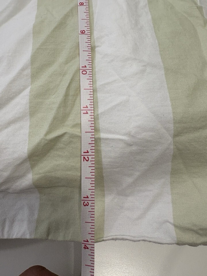 The Simply Shabby Chic Twin British Rose Cabana Stripe Bedskirt is a stylish addition to any bedroom. Made from 100% cotton, this green bed skirt features a classic cabana stripe pattern with a 15-inch drop length, perfect for adding a touch of shabby chic charm to your room. The machine wash care instructions make it easy to keep clean and fresh. With dimensions of 76 inches in length and 39 inches in width, this bed skirt is designed to fit a twin-sized bed seamlessly.