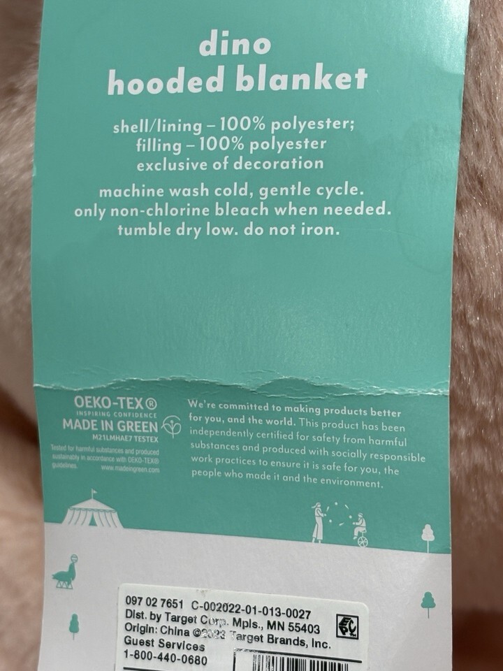 Dino T-rex Hooded Plush Blanket With Pockets. 40x50 New. Pillowfort