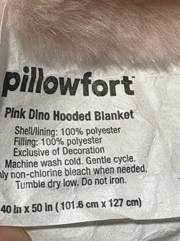 The Dino T-rex Hooded Plush Blanket with Pockets by Pillowfort is a cozy and fun addition to any kid's bedroom. This 40x50 blanket features a solid pink color with a dinosaur theme, specifically a T-rex character. Made of polyester, this breathable and machine washable hooded blanket is perfect for keeping kids warm and comfortable. With its unique design and functional pockets, this blanket is not only stylish but also practical for everyday use.