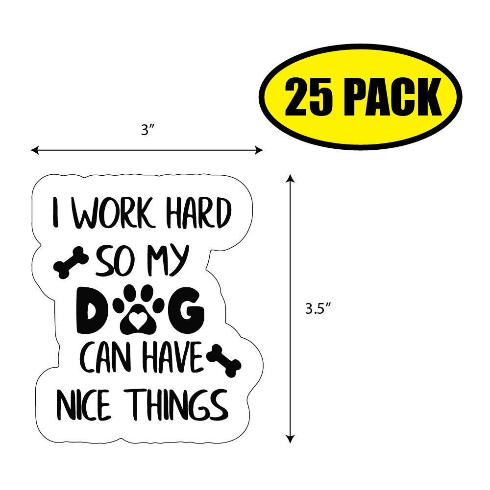 25 PACK 3.5" x 3" I WORK HARD DOG, NICE THINGS Sticker Decal Humor Funny VG0045