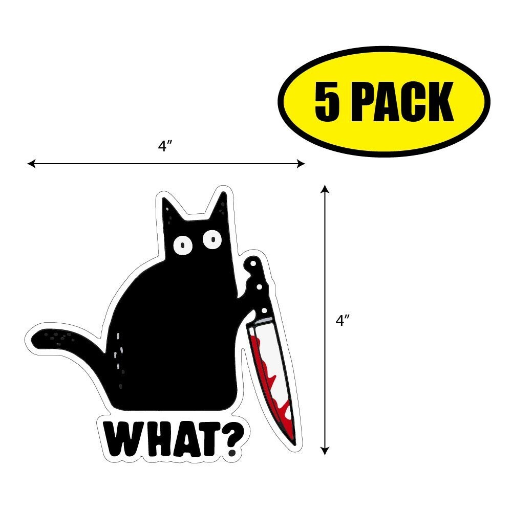 5 PACK 4"x4" WHAT CAT Sticker Decal Humor Funny Gift KNIFE VG0112