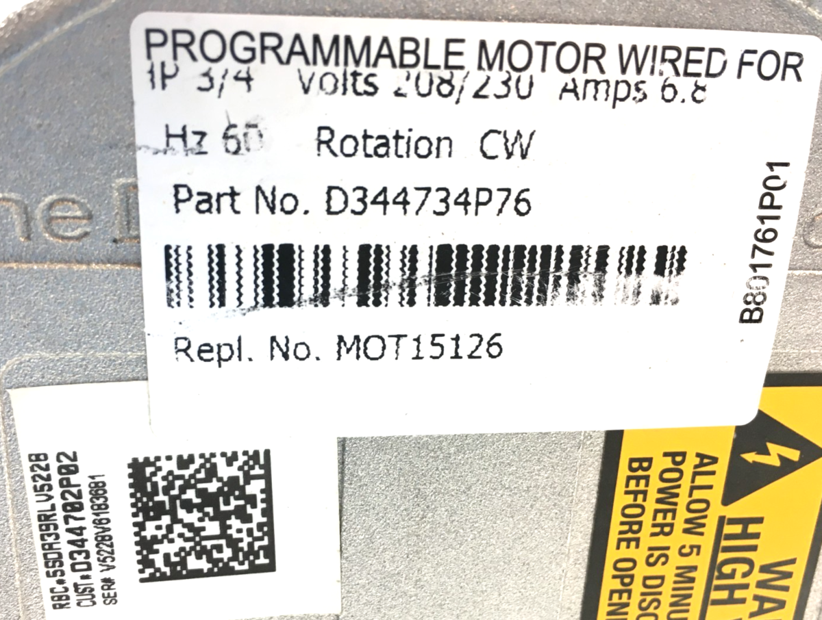 This is Genteq Eon HD02 3/4HP 208-230 V Trane MOT15126 D344734P76 CW Lead End rotation (for use with motor 5SDA39RLV5228) used module. Motor not included, for sale is module only.