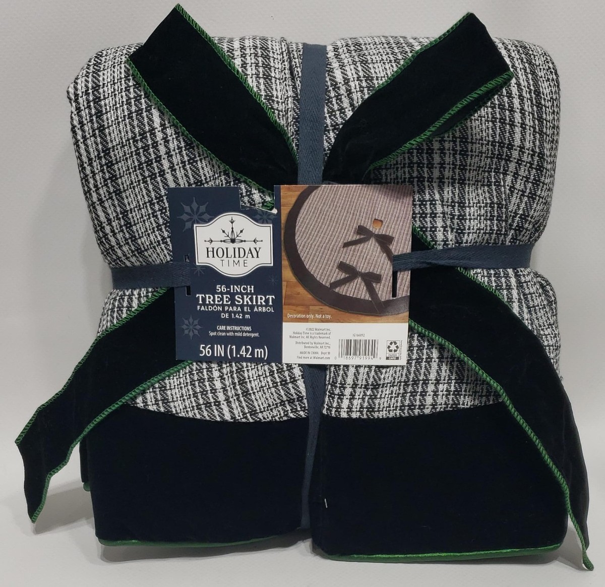 Holiday Time Plaid Holiday Decor Christmas Tree Skirt Black White 56 inch