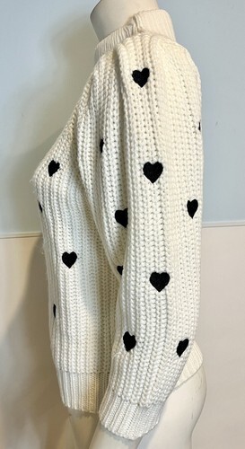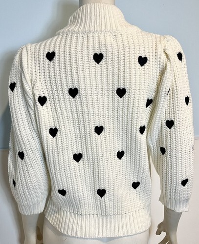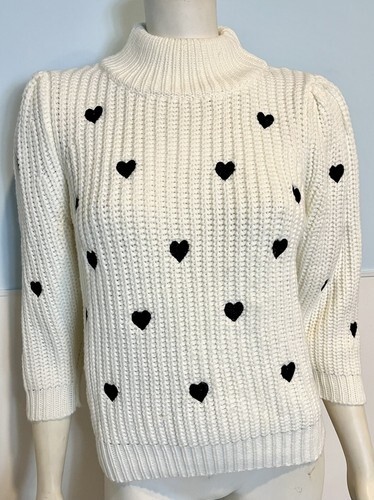 Anthropologie Off White with Black Embroidered Heart Print Long Sleeve Cropped Turtleneck