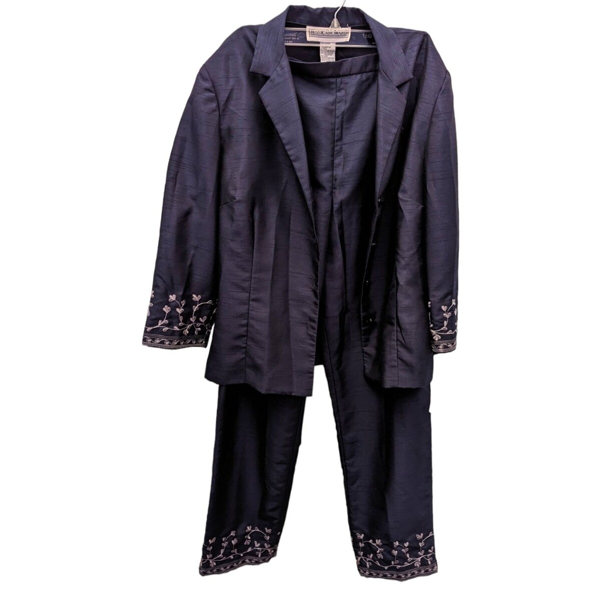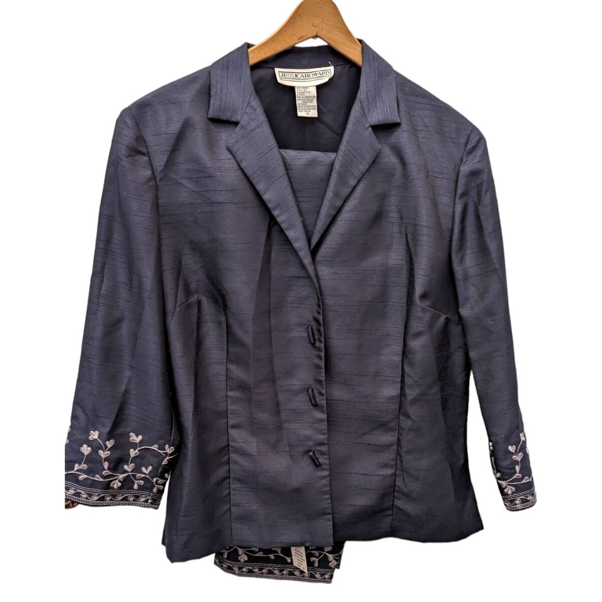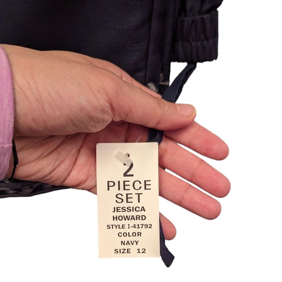 Jessica Howard Womens Two Piece Single Breasted Pant Suit Set Navy Blue Size 12