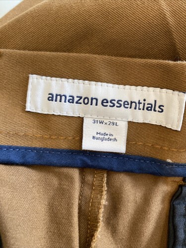 Amazon Essentials Brown Classic Twill Flat Front Pants Size 31W x 29L