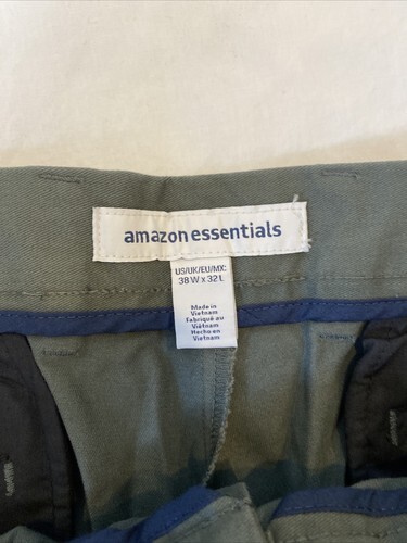 Amazon Essentials Olive Green Classic Twill Flat Front Pants Size 38W x 32L NWT